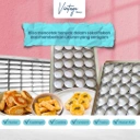 Berikut adalah cetakan kue kering yang biasanya digunakan untuk membuat kue seperti kastengel, nastar, cookies, atau kue kering lainnya. Terbuat dari stainless steel, Cetakan ini memiliki beberapa lubang dalam satu bingkai, memungkinkan pencetakan kue dalam jumlah banyak dengan ukuran seragam serta praktis dan hemat waktu.